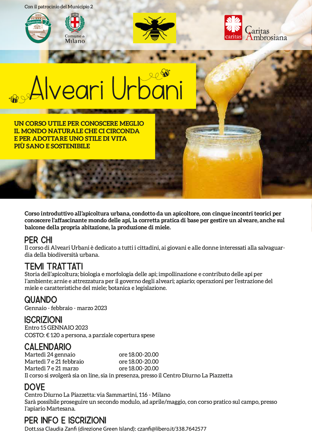 Milano, 05 dicembre 2022 - Green Island/Alveari Urbani, in collaborazione con Fondazione Caritas Ambrosiana e col patrocinio del Municipio 2, organizza il corso introduttivo di Apicoltura Urbana dedicato a tutti i cittadini, ai giovani e alle donne, con una particolare attenzione alle persone con fragilità.