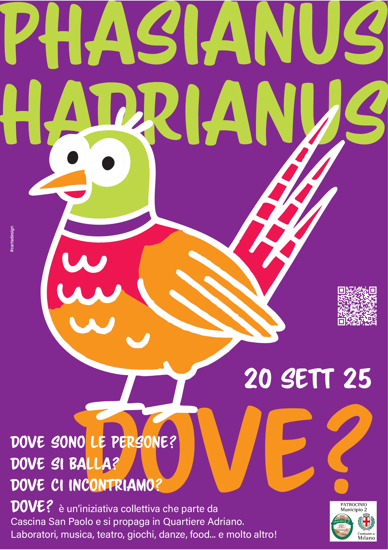 DOVE? nasce da una domanda frequente - ma dov’è Quartiere Adriano? - e si trasforma in risposta concreta, con un evento partecipato, intergenerazionale e interculturale. Un'occasione per rappresentare l’ecosistema e la biodiversità del quartiere.