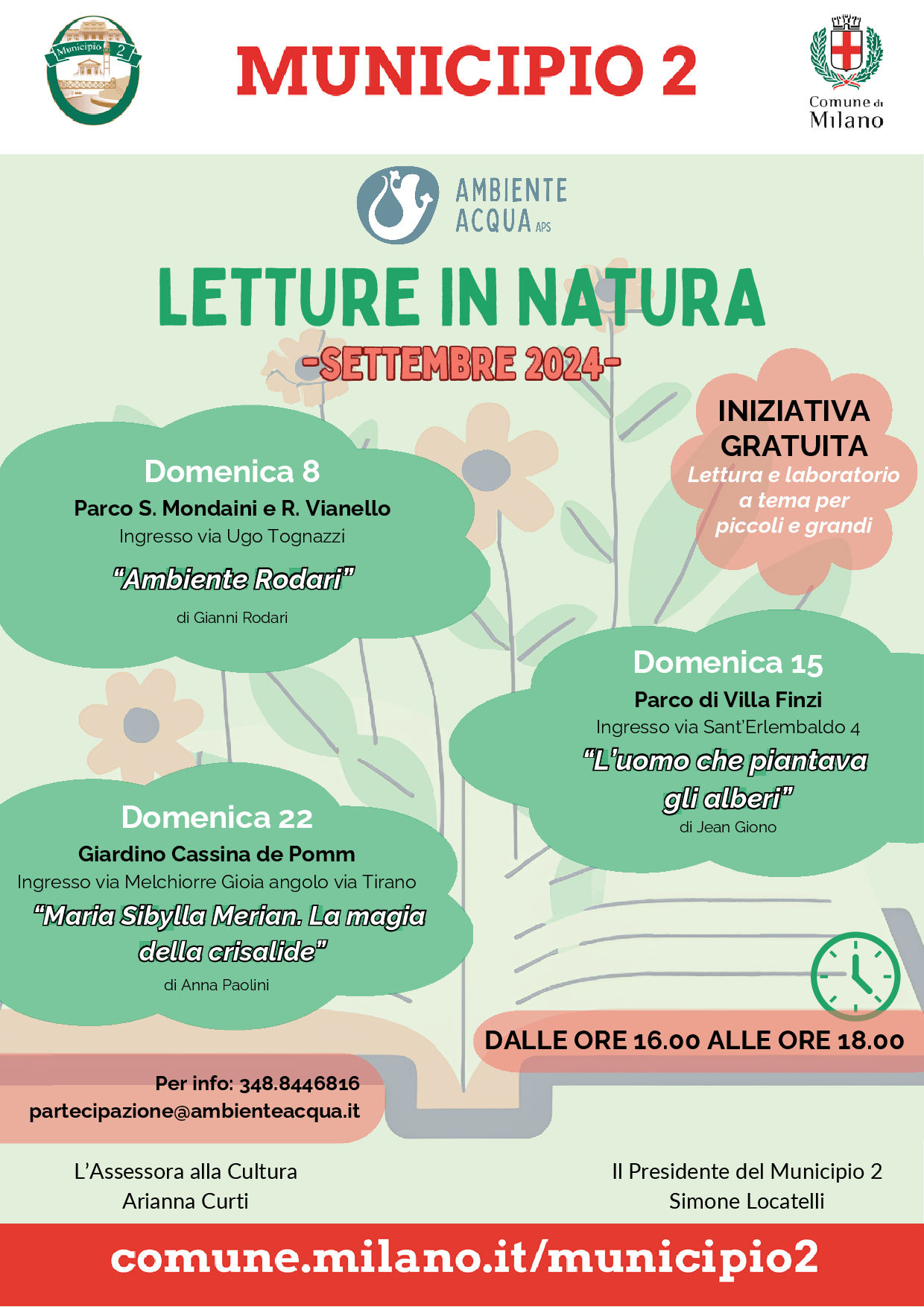 Un pomeriggio ricco di musica, immagini e parole, realizzato a cura di Antica Credenza di Sant'Ambrogio - domenica 08 alle 16:00 - Letture in natura. Ambiente Rodari - parco Sandra Mondaini e Raimondo Vianello