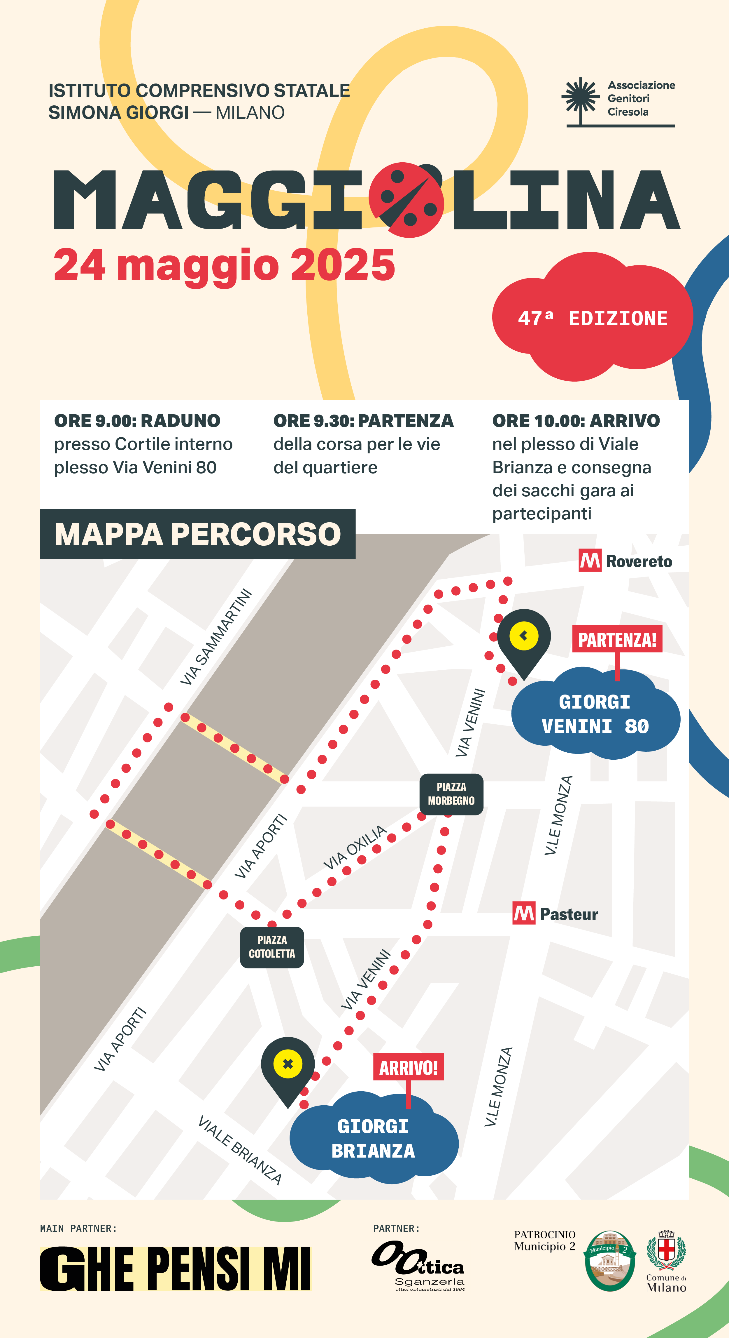 Il raduno è previsto alle ore 9.00 nel cortile del plesso di via Venini 80, dove inizierà la corsa che si concluderà nel plesso Brianza, dopo aver attraversato le vie del quartiere, con una festa all’interno del cortile della scuola.