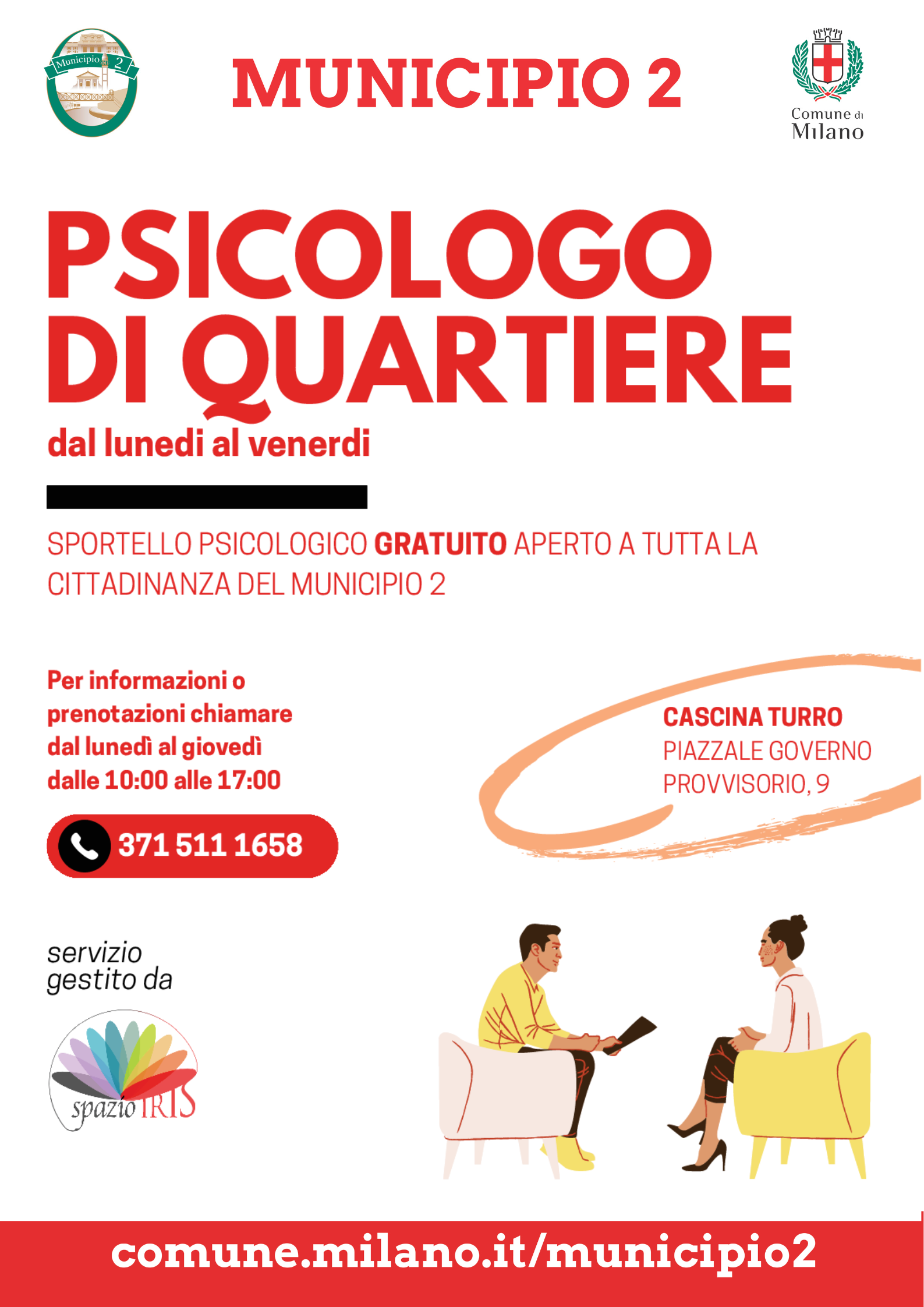 Riapre a Cascina Turro in piazzale Governo Provvisorio 9, dal lunedì al venerdì, lo sportello psicologico gratuito a disposizione della cittadinanza del Municipio 2.