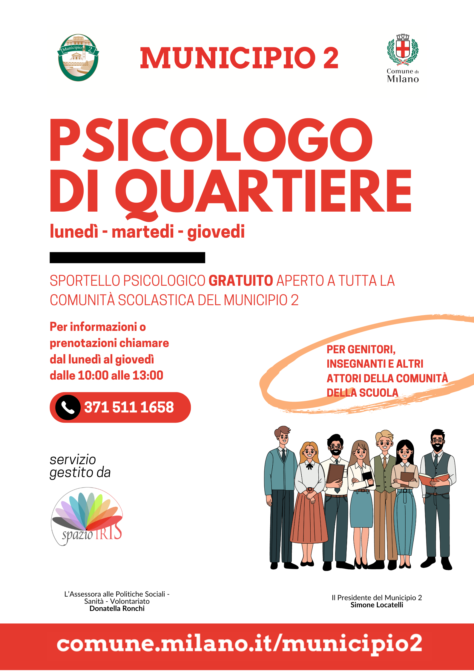 Oltre al servizio di consulenza psicologica gratuita aperta a tutta la comunità, il Municipio 2 mette a disposizione anche quello specifico per genitori e personale scolastico, volto ad individuare i problemi e le possibili soluzioni dei minori, prevenire gli stati di disagio, condividere dubbi e difficoltà che emergono nella quotidianità, progettare il percorso da seguire.