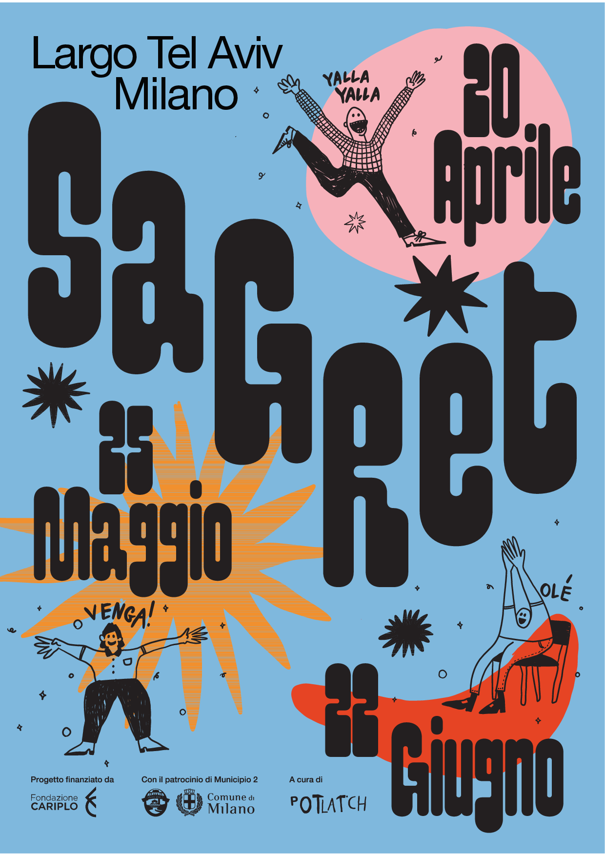 Sagrèt si svolgerà nelle giornate di sabato 20 aprile - 25 maggio - 22 giugno 2024, dalle 16:00 alle 22:00, in largo Tel Aviv.