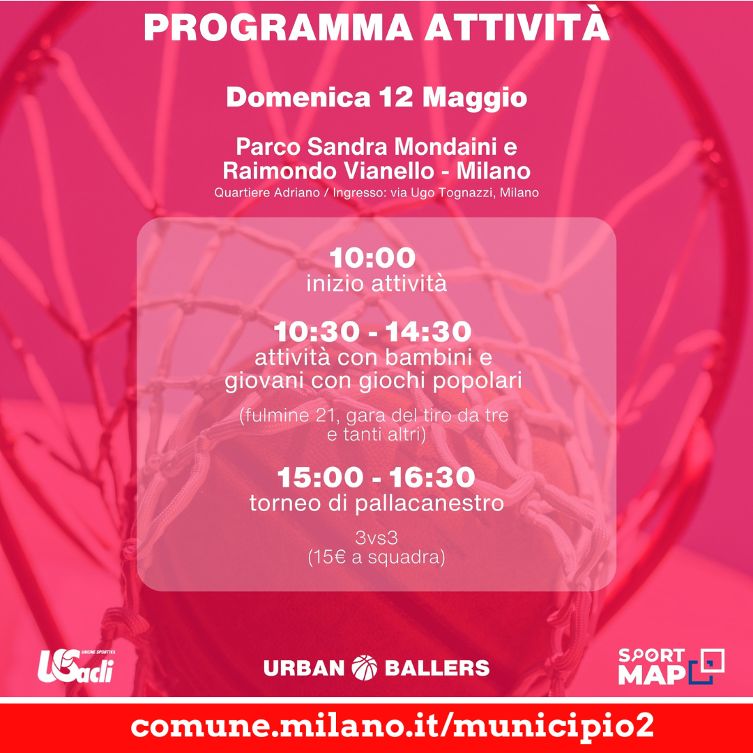 U.S. Acli Milano APS nell'ambito del progetto Sport Map, che consiste nella realizzazione di una mappatura dei parchi con le attività svolte al loro interno, organizza l'evento sportivo del 12 maggio 2024, dalle 09:30 alle 18:30, presso il Parco Sandra Mondaini e Raimondo Vianello a Milano.