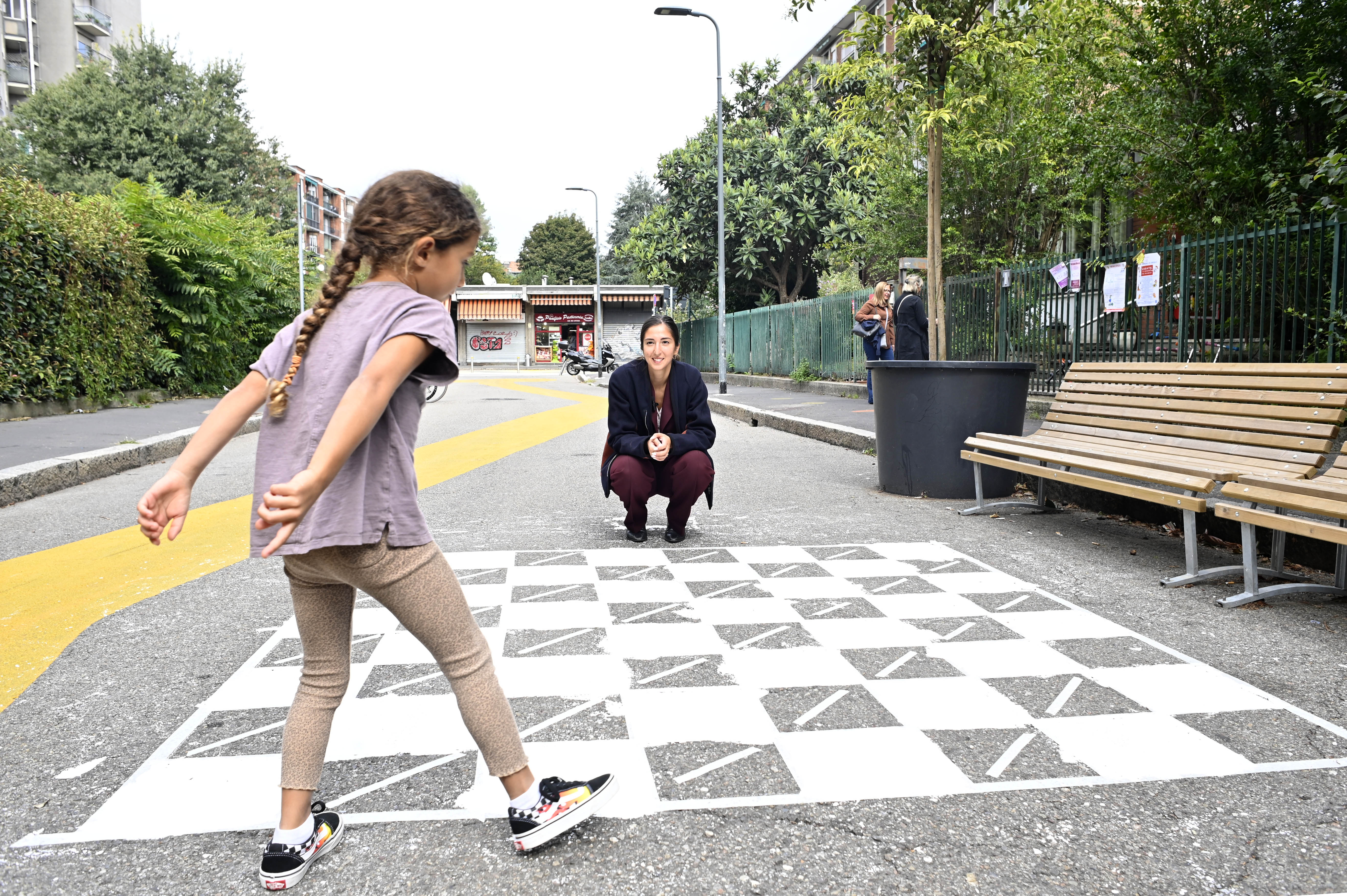 Piazze Aperte per ogni scuola utilizza l’approccio dell’urbanistica tattica di offrire spazi di gioco ai bambini e alle bambine all’uscita di scuola e fornire spazi d’attesa confortevoli ai loro accompagnatori e agli abitanti del quartiere. Incentivare l’interazione sociale nelle aree adiacenti agli istituti scolastici, incrementare la sicurezza all’uscita da scuola, influenzare gli spostamenti casa-scuola incoraggiando soluzioni non inquinanti sono tra gli obiettivi prioritari del programma.