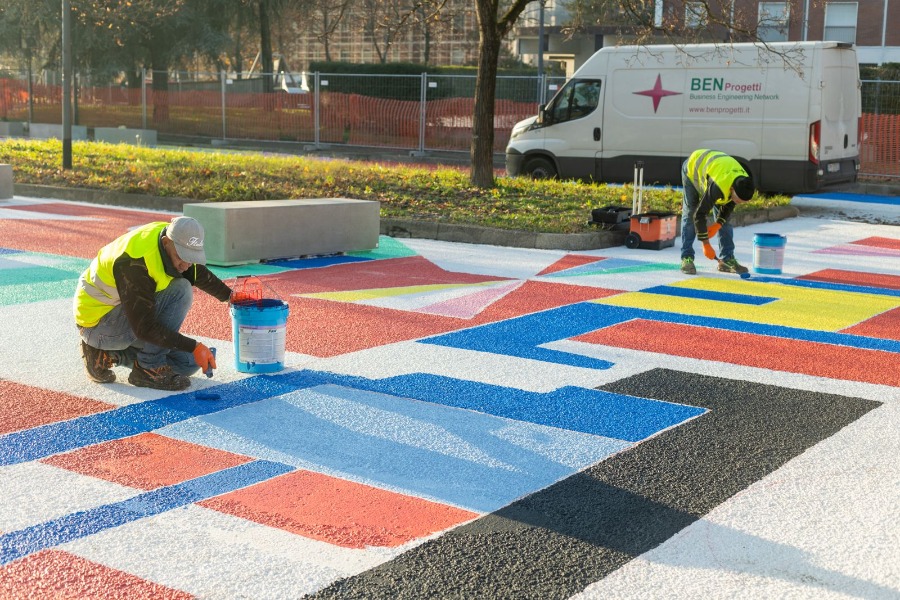 L’intervento riguarda la pedonalizzazione e riqualificazione del parcheggio antistante la scuola primaria “De Nicola”, situato tra via Enrico De Nicola e piazza Enzo Paci, allo scopo di trasformarlo in uno spazio sociale e di aggregazione per la comunità locale.